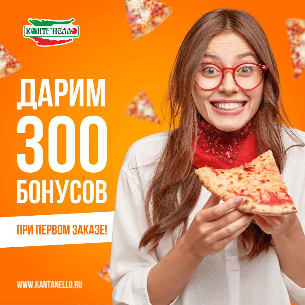 Пройдите авторизацию на сайте www.kantanello.ru или в мобильном приложении по номеру телефона и получите 300 бонусов на баланс. С условиями бонусной системы можно ознакомиться ниже.